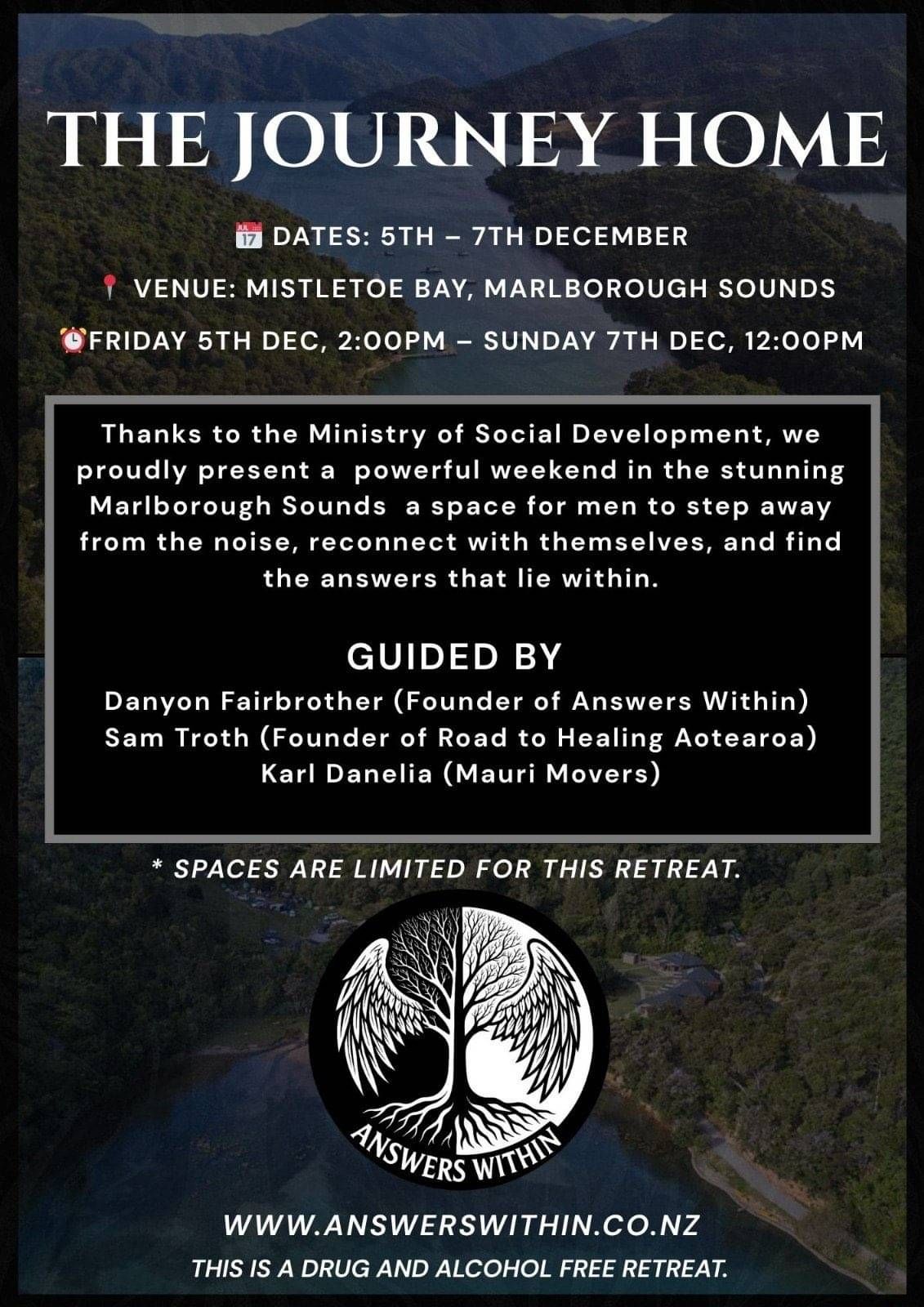 Guided by Danyon Fairbrother (Answers Within), Sam Troth (The Road to Healing Aotearoa), and Karl Danelia (Mauri Movers).